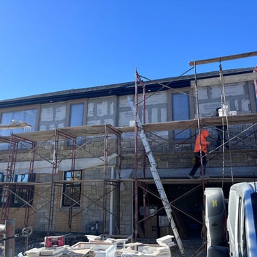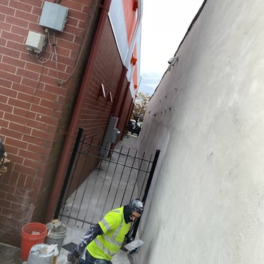 home or commercial bricks, stones, stucco and concrete foundation, concrete slab