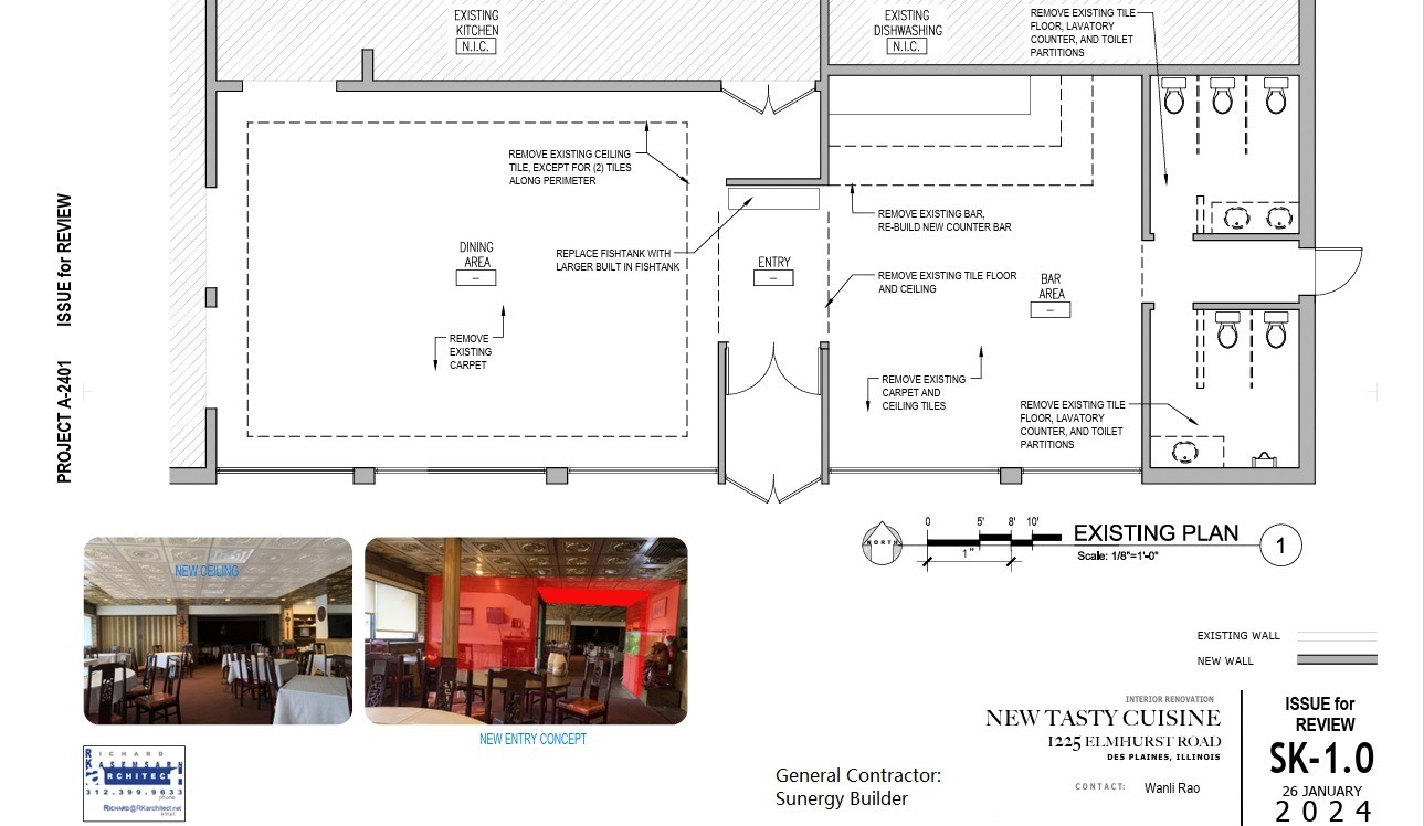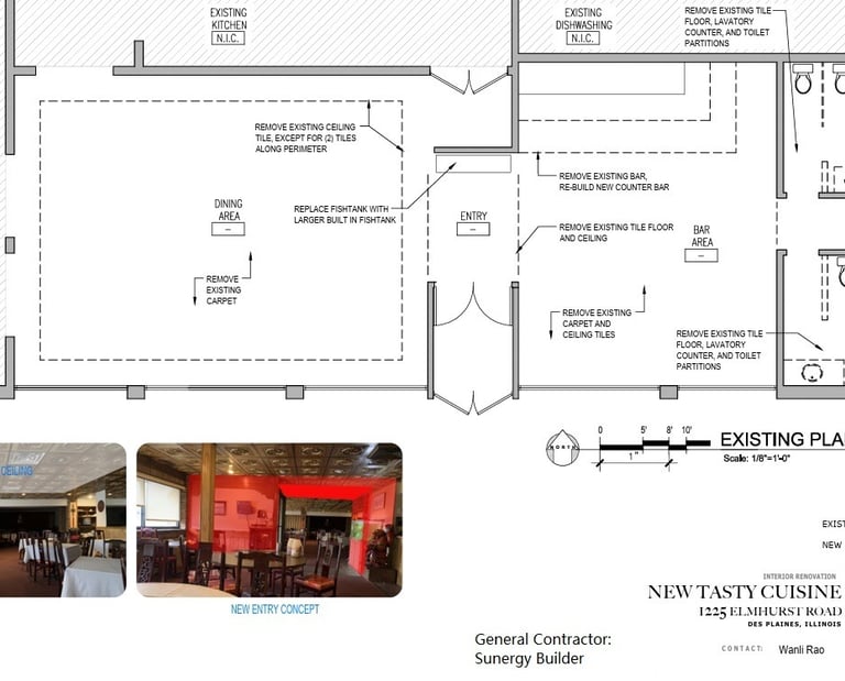 complete redesign with renderings plan for client restaurant owner, at West Allis, Milwaukee Wi.