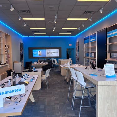 Complete make-over this AT&T store with re-design and re-built in less than two months. Including, underground power, plumbing, electrical, mechanical, framing, inspection and occupancy.