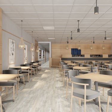 Sunergy Builder design team Co-design with architect Richard Kasemsarn, The Restaurant offers contemporary views with a modern feel. Perfect for a couple, a small family, a professional group, or anyone looking to have a quick casual place to eat in the Northwest Suburban, Des Plaines, Illinois.